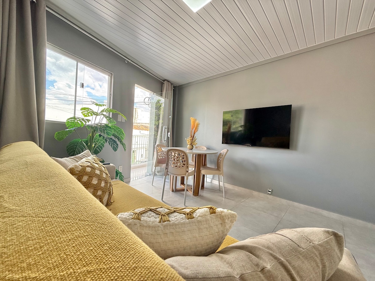 新公寓,距離卡魯阿魯購物中心和Senac僅300公尺,享有令人驚嘆的城市景觀。配有舒適的雙人床、可收看頻道和Netflix的智慧電視。我們提供免費Wi-Fi和停車位。公寓配備齊全(空調、熨斗、桌子、伸縮沙發、微波爐、冰箱、爐台、冰箱、盤子、餐具、玻璃杯、攪拌機、熱水淋浴、咖啡機等)。我們的大樓有健身房、游泳池、宴會廳、電梯和電子接待處。
