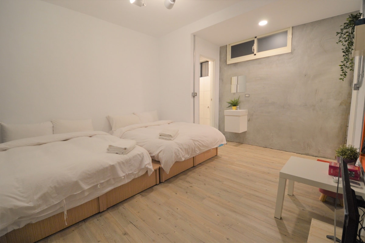 2台中逢甲簡約四人房(可住到六人),到夜市2分鐘,位於一樓