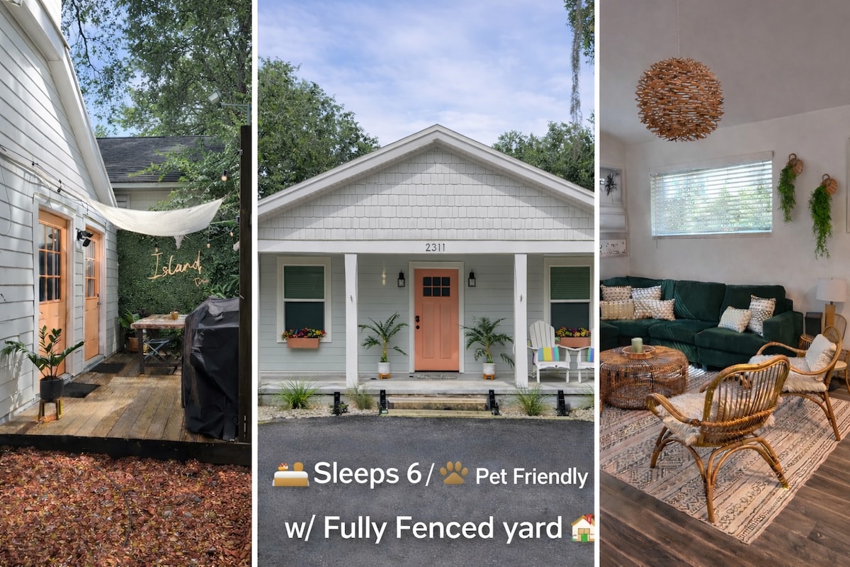 包含街道合法高爾夫球車!探索島嶼生活! 在我們迷人的 3 臥室海灘小屋中,探索非凡的海岸度假勝地。距離沙灘和費爾南迪納市中心僅幾分鐘路程,可免費使用高爾夫球車,享受更多便利。帶上您的寵物,一起來到這個溫馨、適合寵物入住的天堂。在開放式起居空間放鬆身心,在露台上喝早餐咖啡,輕鬆探索島嶼的最佳景點。立即預訂,享受獨特且輕鬆的島嶼體驗!