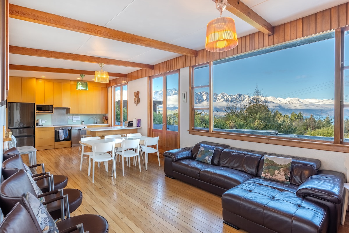 從陽臺、寬敞的起居區和臥室欣賞絕對令人驚嘆的景色! 寬敞的公寓,配有開放式餐廳、休息室和全套廚房。 最近重新裝修,配有非常舒適的床和沙發/沙發床。 安靜的位置。開車5分鐘即可抵達皇后鎮中心。 步行 2 分鐘即可抵達巴士站。 這是房子的整個樓上。 下面有2套單間公寓,與房子的其他部分隔開,在您住宿期間可以單獨出租。