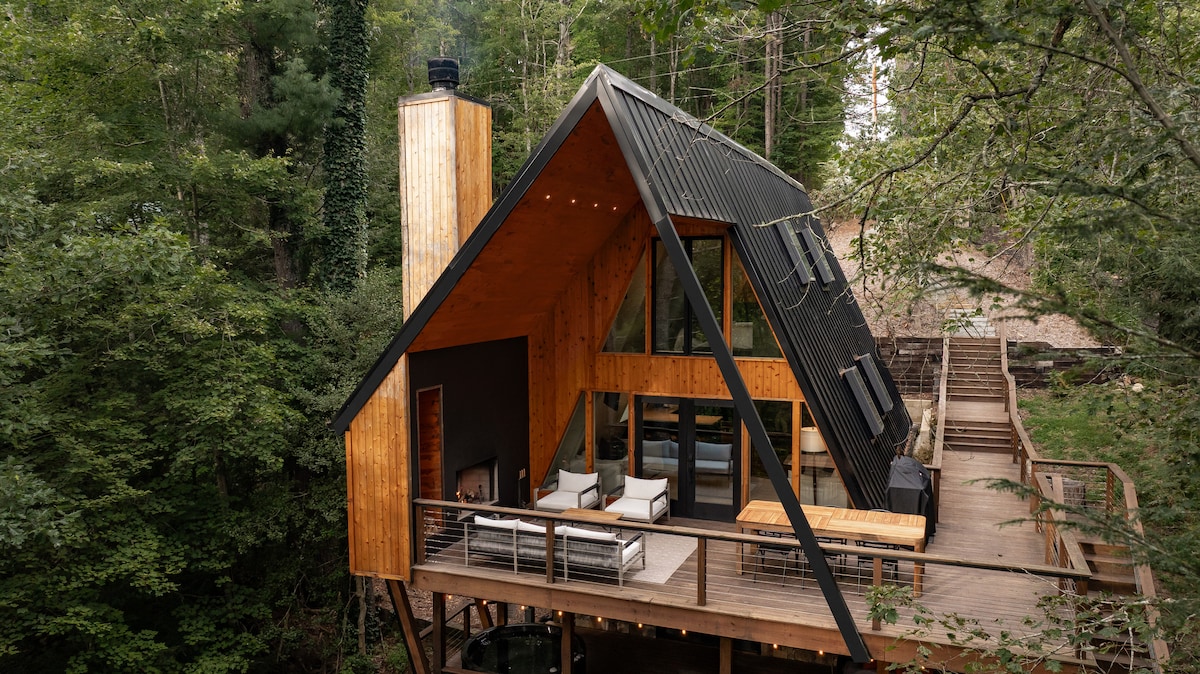 Hilltop Haus是我們的第二個家。 一個小型復古三角屋,坐落在森林中,全年可欣賞到藍嶺山脈的壯麗景色。我們很高興與您分享我們的私人度假勝地。 我們的小屋距離您可能需要的所有餐廳和商店僅幾分鐘路程。 我們周圍有充滿自然的活動:徒步旅行、世界一流的飛蠅釣魚、白水漂流等! 您可以期待沉浸在大自然、隱私和絕對令人驚嘆的日落中。