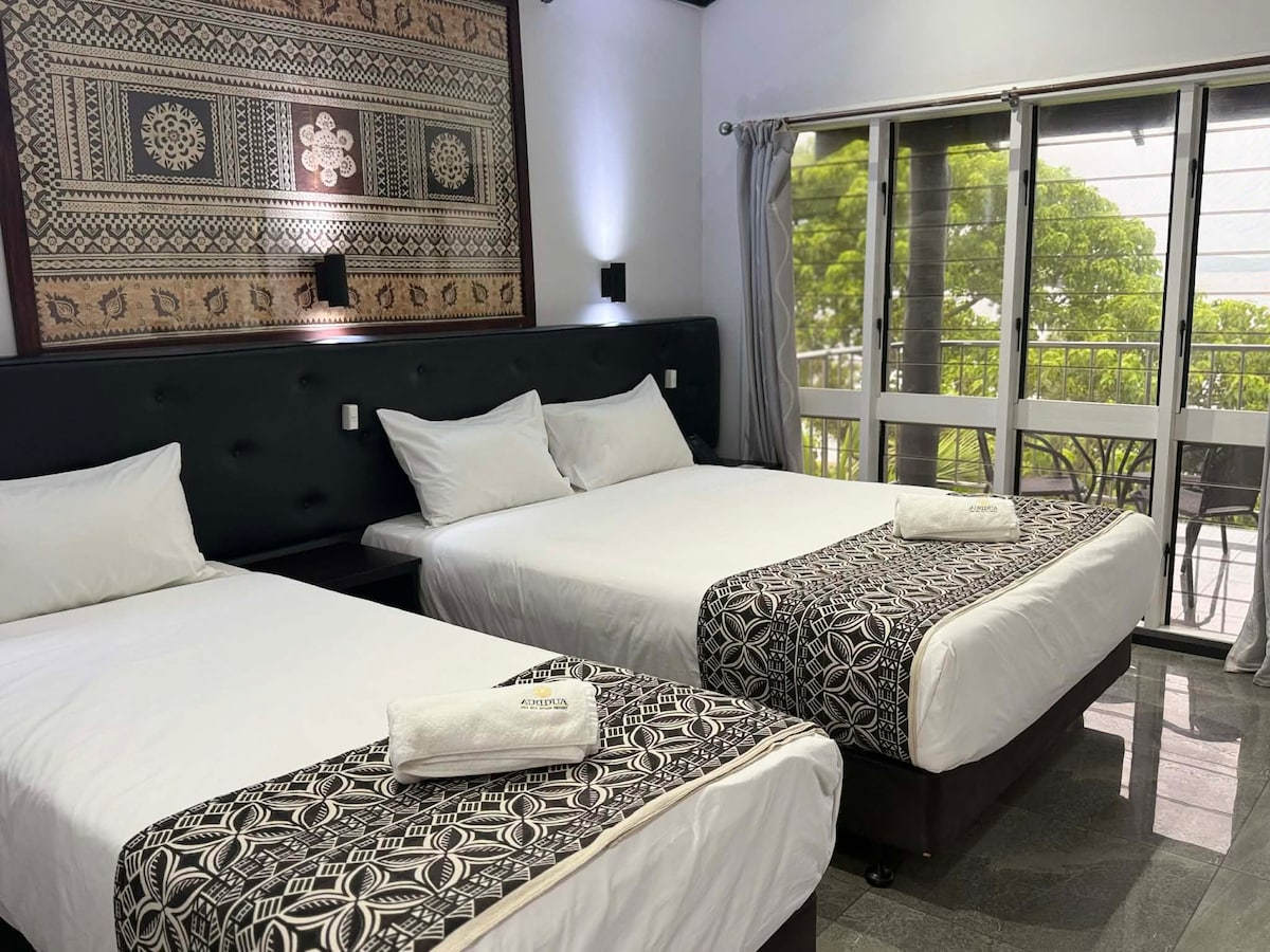 Enjoy breathtaking ocean views from our Premium Super Deluxe Ocean View Room on beautiful Duadua Island, Fiji. This comfortable twin-share room features air conditioning, Wi-Fi, and a private bathroom. Guests enjoy a continental buffet breakfast, kayaking, and snorkelling at Duadua Reef. Located just a 10-minute boat ride from the mainland, the resort offers a peaceful island escape with clear waters, tropical scenery, and warm Fijian hospitality.