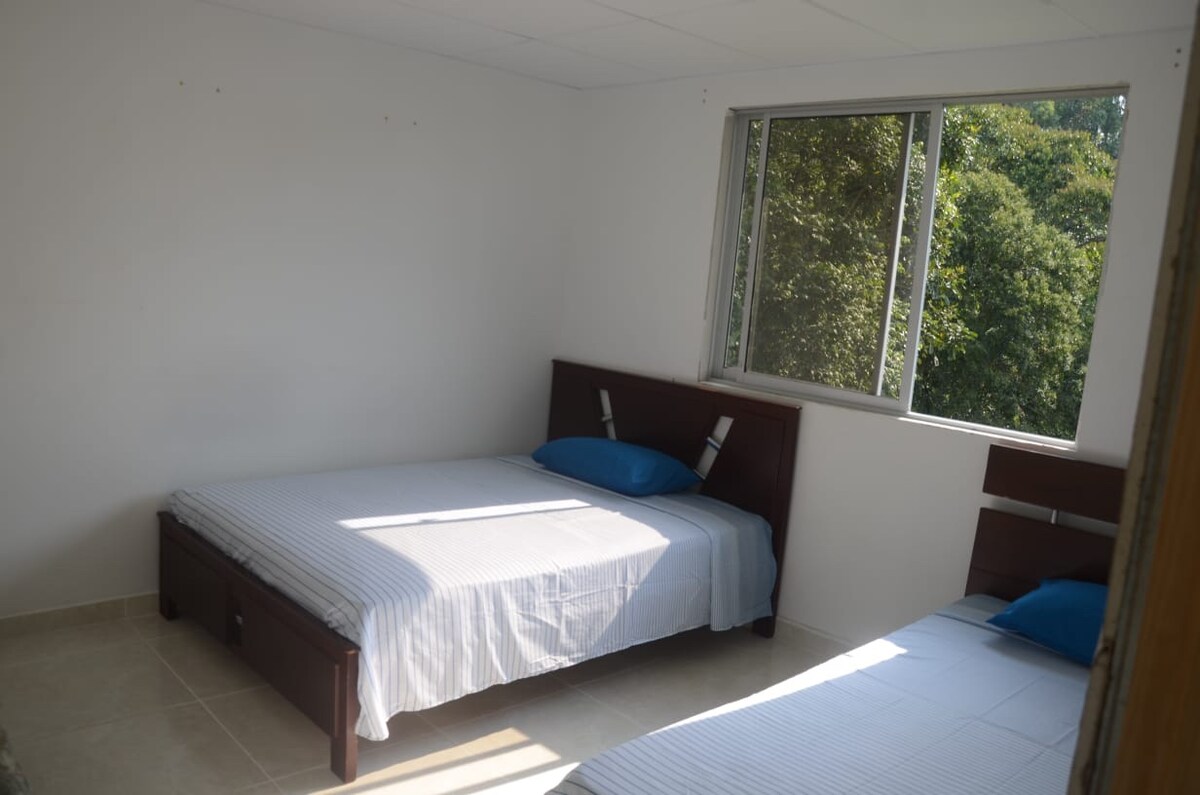 享受這間安靜且位於市中心的住宿的簡單。位於交通總站前面,在一條車輛不多的街道上,它位於城鎮內,但與大自然相連,您可以在一個街區內找到商店、麵包店,主廣場在 5 個街區外,在皇家街上,您可以找到哥倫比亞最美麗的手工藝品、餐廳、咖啡館、糕點店等