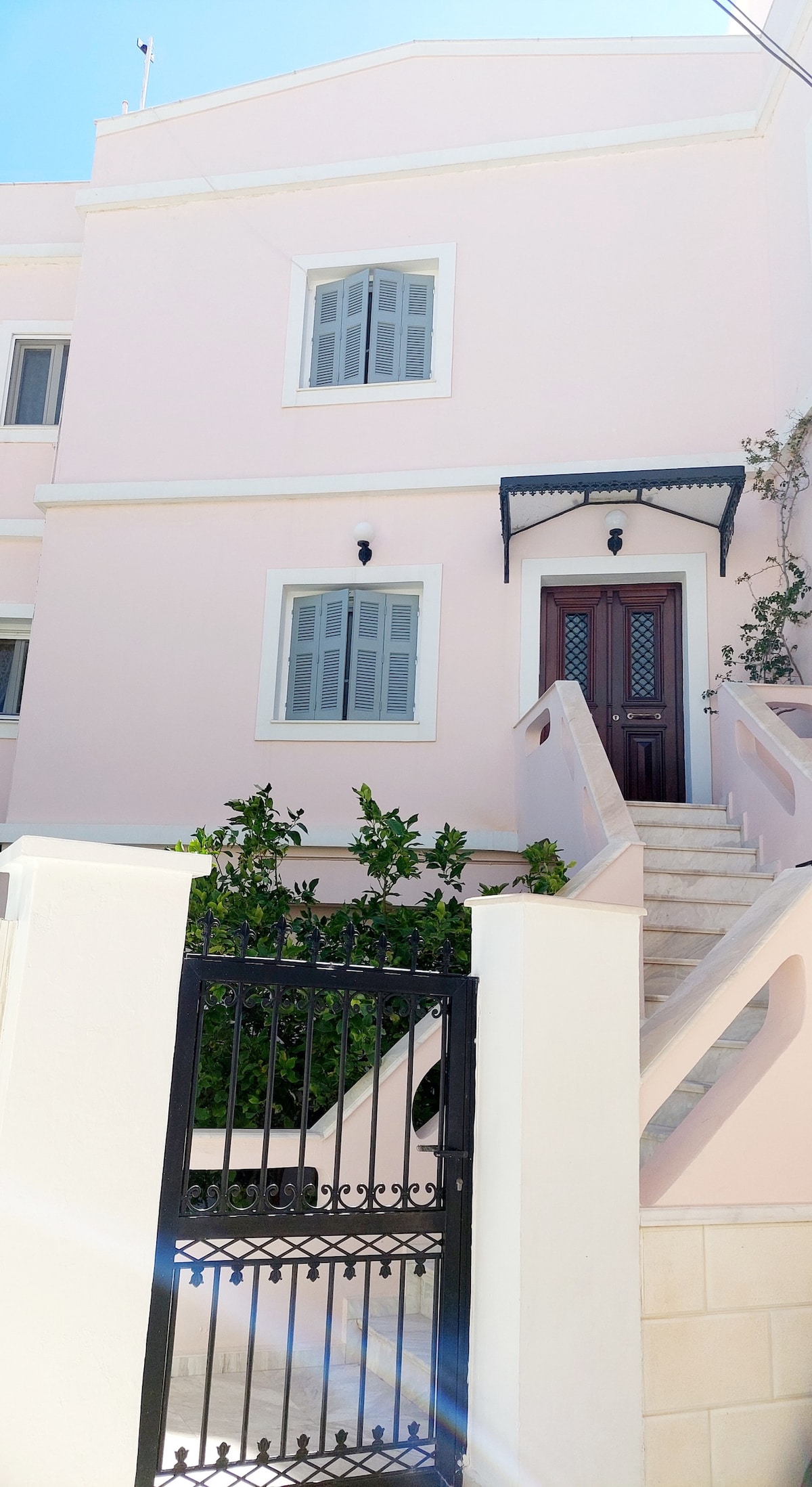 位於希羅斯鎮中心的美麗傳統房屋,位於獨特的風景如畫的「Vaporia」街區。房子建在岩石上,可欣賞愛琴海的獨特景觀。它建在四層(許多臺階!)上,可獨自前往海邊和私人開放露臺。兩間宣傳的獨立房間位於3樓和4樓,可通過1樓(街道樓層)的主入口進入。兩個房東家庭和一隻小狗和貓住在1樓和2樓。