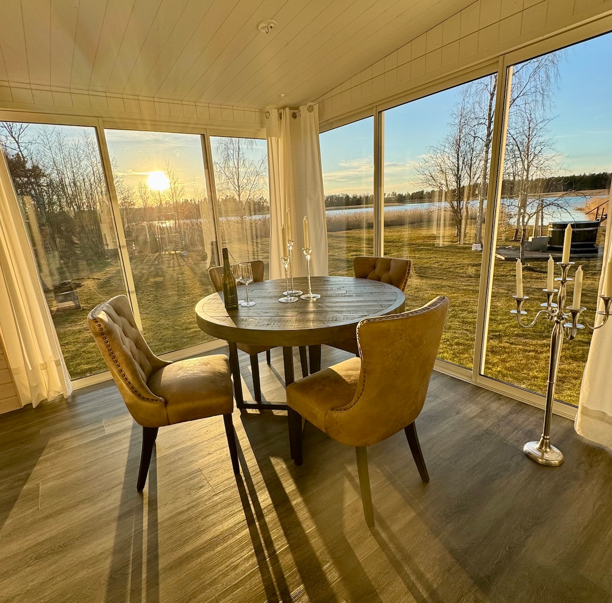 超級舒適的小屋,有200公尺的私人海灘。 坐在150平方公尺的露臺上,欣賞超過5000平方公尺的草坪與海灘相連,然後過渡到下面的鏡面大海。 這顆通往小屋的寶石設備齊全,主小木屋有六張牀,獨立套房內有兩張+一張牀,附近客房還有兩張牀。 在旅居內,有一個燃木桑拿房,作為旅人,你可以使用三艘較小的船,也可以租用Kimple 460!