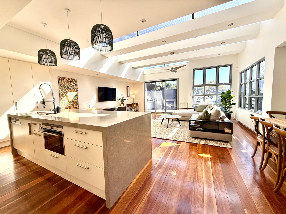 這座擁有100年歷史的工人小屋擁有定制的室內裝潢 牆壁和架子上擺滿了華麗的藝術品,房源內到處都是特別採購的古董,床上鋪滿了豪華的床單,休息室有一張3人沙發,您可能永遠不想離開。 位於市中心,對面是南墨爾本市場,步行即可抵達阿爾伯特公園湖,乘坐電車即可抵達中央商業區。 請注意-沒有電視,如有需要,請攜帶裝置。