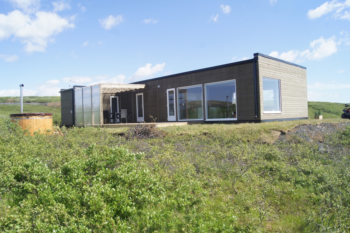 想體驗熱門的Fjaðrárgljúfur峽谷附近令人驚嘆和舒適的住宿嗎? 我們的新小屋距離Fjaðrárgljúfur峽谷2公里,距離Kirkjubæjarklaustur 7公里 小屋建於2018年,設計極簡主義、溫馨舒適,欣賞冰島的迷人大自然。 幸運的話,您甚至可以在寒冷的冬夜看到天空中的Nothern燈光。