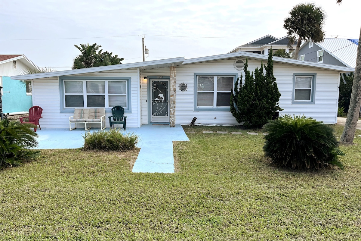 Beachfront home - no road to cross to put your toes in the sand! Oceanfront living and waking to the sparkling blue waters & sunrise will start your days off on the right sandy foot! Whale and dolphin watch from your patio. Walk out the Back door and onto the private beach. We are not surrounded by high-rise condos but offer a more peaceful getaway. Nearby golf, farm market, ice cream or visit the pier, then Orlando, St Augustine, Daytona and LPGA. We have a 50’ driveway.
