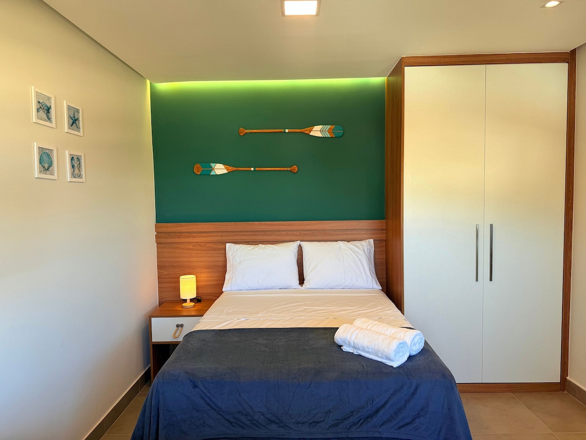 單間公寓簡單而舒適,提供良好的住宿,距離薩爾瓦多其中一個著名的海灘50公尺,其海濱剛剛現代化,距離國際機場10公里,距離市中心25公里。公寓有24小時門衛,靠近酒吧、餐廳和商店。單間公寓配有空調和風扇,可容納3人,因為沙發床可變成雙人床,陽臺有吊床和泳池景觀。 來放鬆一下,享受愉快的時光!