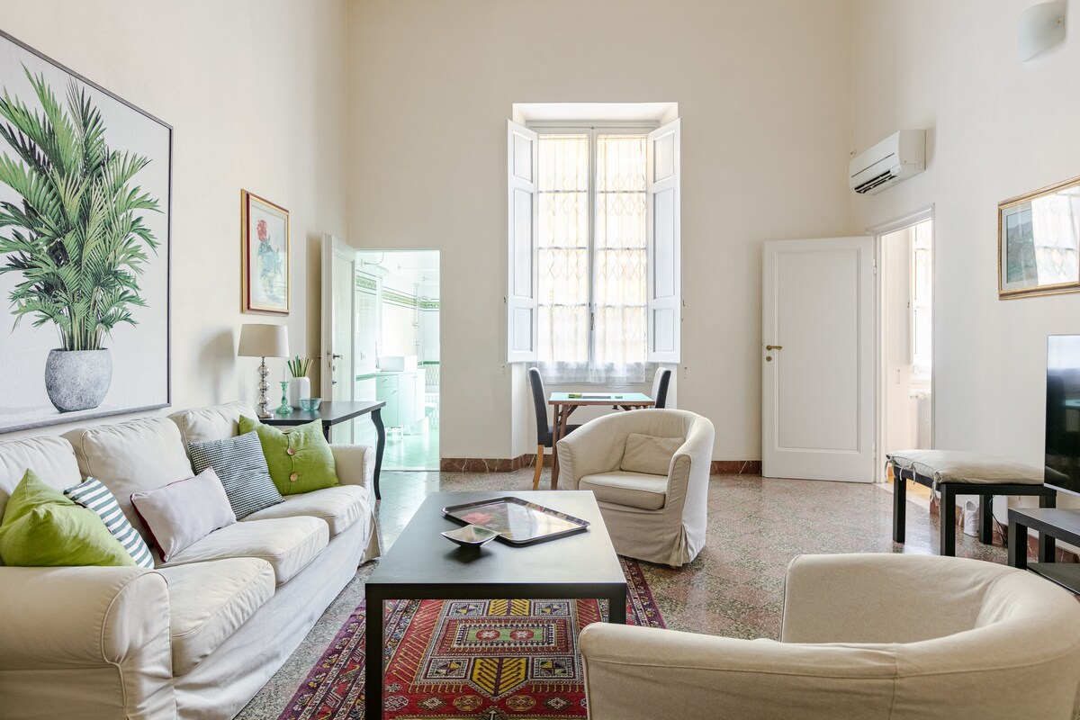 位於佛羅倫斯歷史中心的一座19世紀宮殿的一樓,步行2分鐘即可抵達學院博物館,內有米開朗基羅的大衛。 非常漂亮的公寓,由四間大房間、客廳、廚房、兩間浴室、私人花園組成。 非常適合家庭度假,保持社交距離。 我們會特別注意房屋清潔,入住和下次退房之間需要24小時。(請詢問更多資訊)。