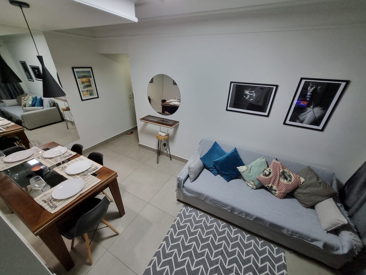 公寓位置優越,45 平方米。擁有獨立房間、空調、設備齊全的廚房和家庭辦公空間。 地理位置優越,可輕鬆前往市場、餐廳、醫院、學院、當地商店和城市主要街道。 Av. das Esmeraldas 的 Cooper 跑道:步行 3 分鐘; 翡翠購物中心:步行 7 分鐘或開車 3 分鐘; 自助洗衣店:步行 5 分鐘或開車 2 分鐘。