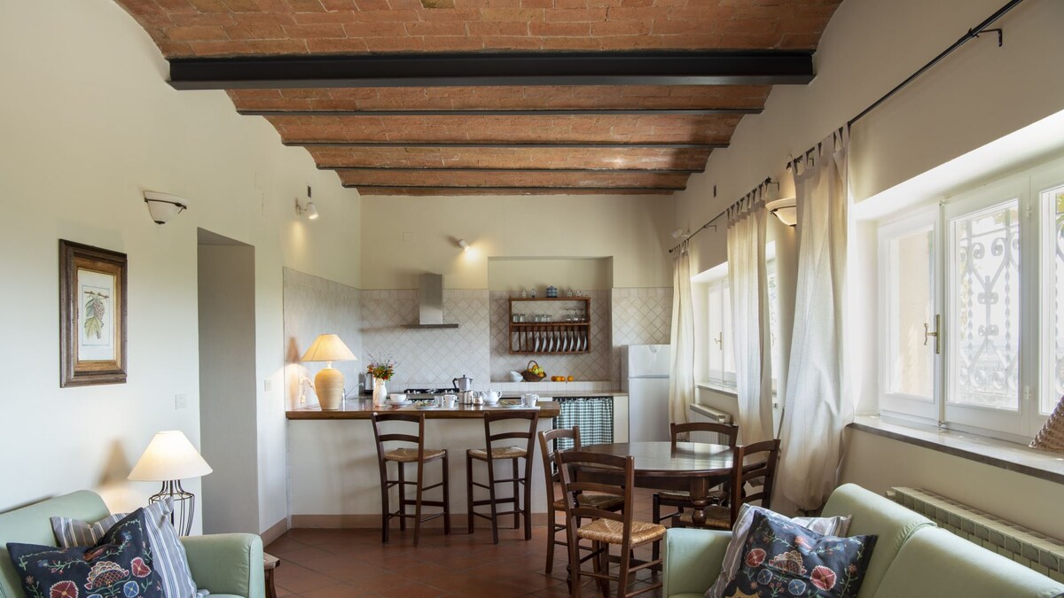 這個傳統而精緻的意大利村莊可追溯至1783年,完全沉浸在大自然中。 Montestigliano在託斯卡納市中心為房客提供奢華和舒適的住宿體驗,提供所有服務,包括供房客使用的菜園和兩個遊泳池。 這片寧靜與美麗的綠洲距離錫耶納( Siena )僅12公裏,距離佛羅倫薩( Florence )、聖吉米尼亞諾( San Gimignano )、科爾託納( Cortona )、蒙特普恰諾( Montepulciano )和皮恩扎( Pienza )等地深受喜愛的寶藏僅幾步之遙。 美麗的家庭經營的農場坐落在自己的山頂上,可俯瞰默斯河谷。 該莊園分佈在兩千英畝的土地上,覆蓋了童話的林地、美妙的柏木大道、霍爾姆橡樹和軟木橡樹、小麥、大麥、向日葵和迷宮,以及3000棵橄欖樹的樹林,從中製作美味的DOP特級初榨橄欖油。 每間農舍都經過詳細翻新, Montestigliano的風格、裝飾和魅力使其成為一個特別和獨特的目的地,讓您度過美好、愉快且最重要的是令人難忘的假期。 農場提供傳統的託斯卡納烹飪課程和橄欖油品嚐、星空晚餐、披薩盛宴以及內部私人餐飲或按摩服務。 雖然周圍區域有許多機會在大自然中漫步,但在當地餐廳品嚐典型的菜餚、騎馬或騎自行車之旅、參觀當地市場、在溫泉中放鬆身心或在附近的河流中暢遊。 或者,你可以享受一盤美味的新鮮魚類一日遊,當然,別忘了該地區眾多當地釀酒廠,提供來自Chianti和Val d 'Orcia地區的精緻葡萄酒,以及一盤當地奶酪和冷剪。 這間可愛的一樓公寓位於主別墅旁,距離遊泳池僅一步之遙。 大型有蓋開放式露臺,配有餐桌和椅子,通往大型開放式客廳/廚房,以及通往兩間臥室和兩間浴室(一間套房)的小走廊。 公寓位於主廣場外,可供輪椅使用者使用,最多可容納4位房客(約105平方公尺)。 在探索一天後,有蓋的露臺是放鬆身心的完美場所,您可以品嚐美味的當地葡萄酒,一邊欣賞下面的山谷的美景。