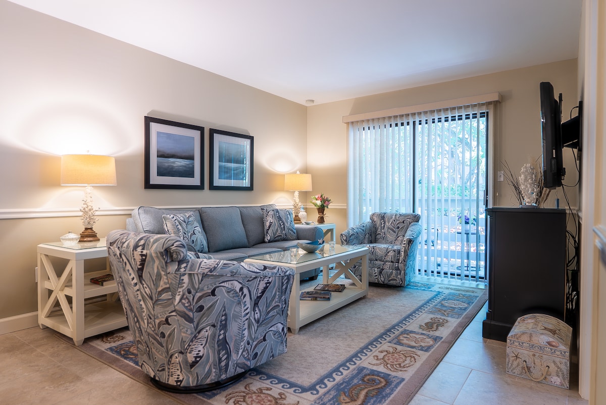 歡迎來到我們新翻新的Fiddler 's Cove一樓單位。 非常適合打網球、匹克球、高爾夫球、騎單車或海灘度假! 步行5-7分鐘即可抵達Folly Field海灘,我們的客人可使用私人海灘通道。 使用我們的海灘裝備。 非常安全的WiFi。周圍有世界一流的高爾夫球場。 享受5星級便利設施,包括2個遊泳池、按摩浴缸、壁球場、泡菜球場和健身房。 3月1日至10月31日開放泳池,按摩浴缸全年開放。