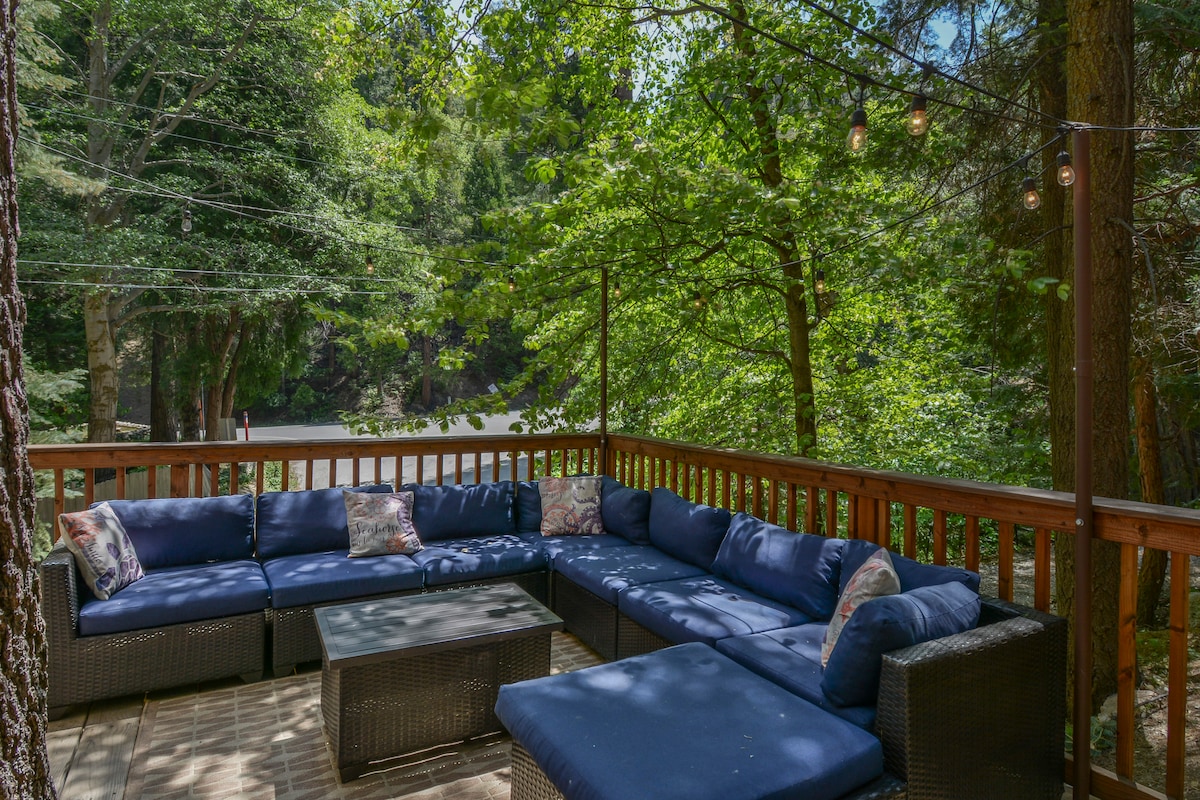 這間有趣的小木屋步行5分鐘或開車2分鐘即可抵達湖泊、村莊、餐廳、零售商店和雜貨店。如有需要,可提供湖泊通行證。非常適合小家庭或情侶的浪漫度假。 我們是聖貝納迪諾山脈(San Bernardino Mountains)中一個適合寵物入住的絕佳位置。輕鬆前往滑雪、單板滑雪、山地自行車、徒步旅行、釣魚、划船、游泳、天空公園(聖誕老人村)和箭頭湖村!