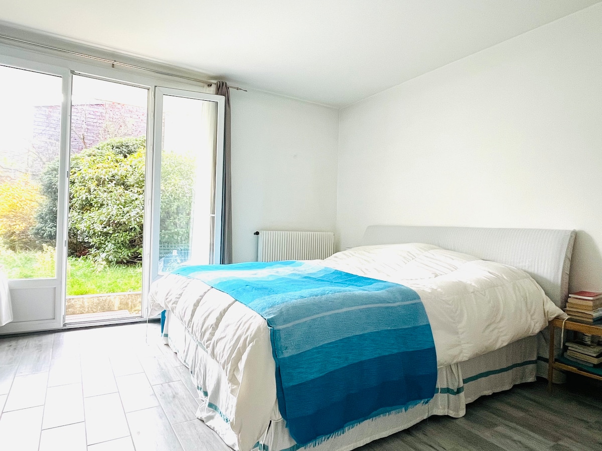 這間可愛的公寓靠近Vincennes中心,步行即可抵達,安靜、安靜、令人驚嘆的休息和特大床等待著你。 這個可愛的大花園和寬敞的一間臥室讓您忘記工作日或繁重的步行,並充分充電。 街頭泊車🅿️是免費的,Vincennes的中心距離10分鐘。非常罕見! 在花園放鬆身心,享受巴黎皇家城市Vincennes的活力及其眾多有機商店、頂級咖啡店和巨大的公園! 歡迎來到你的花園旅居!