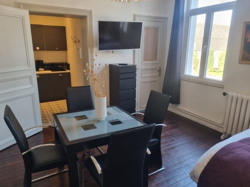 50 平方公尺的二樓公寓,包括兩間臥室(兩張雙人床)、一間私人浴室和一個陽台露台,位於一棟 18 世紀的房屋內。 此外,住宿還提供獨立廚房,配有微波爐、水壺等。 早餐僅在第一天提供。 位於勒凱努瓦市中心,靠近劇院、城牆,步行 10 分鐘即可抵達火車站,可前往瓦朗謝訥、里爾。