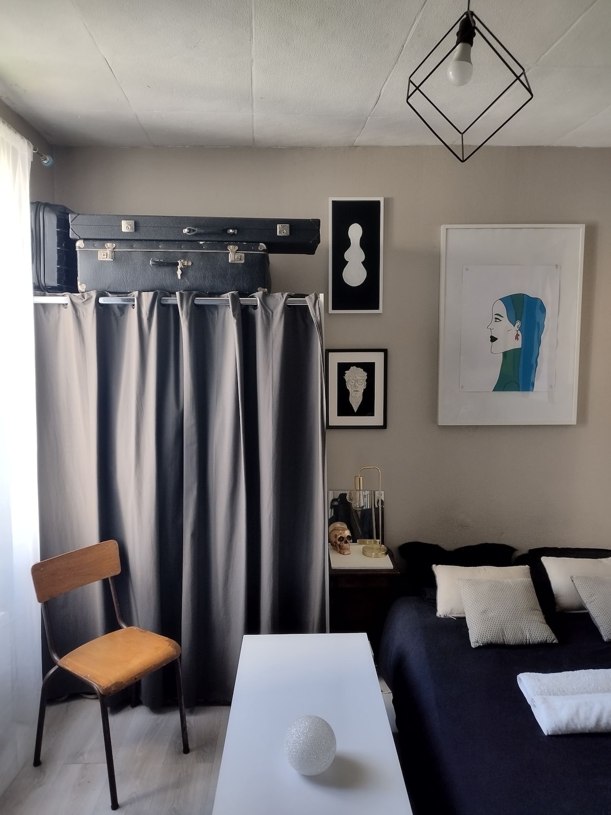 30平方米的獨立巢穴,配有獨立廁所和熱水淋浴。 1張雙人沙發牀 1張單人折疊沙發 1個洗手盤、迷你雪櫃和電爐、微波爐。 提供牀單、牀單和羽絨被。 距離楓丹白露( Fontainebleau ) 10公裏,在森林山脈、自然和根源氛圍的邊緣。 我很高興地歡迎您探索或重新發現美麗的楓丹白露森林,並為您提供該地區不容錯過的景點或未知景點。