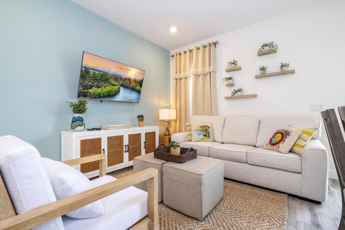 靠近迪士尼! 令人驚嘆的*全新3間臥室/3間浴室房源,位於Margaritaville的豪華社區內。這個私人綠洲位於市中心,距離公園和餐廳只有幾分鐘路程。日落步道(Sunset Walk)位於度假村旁邊,有更多的購物、餐廳、Dine-in Lux Theater和娛樂設施,包括Gloria Estefan的「Estefan Kitchen」。當您放鬆身心時,孩子們會喜歡新的壯觀水上公園, Island H2O Live。歡迎來到您的島嶼冒險!