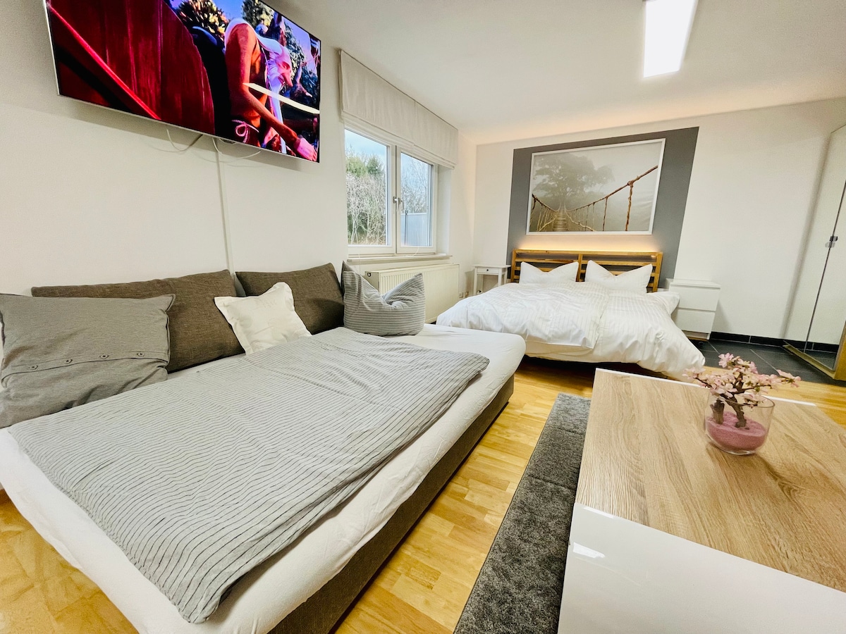 Herzlich Wilkommen in unserer stilvoll eingerichteten Wohnung. Sie ist voll ausgestattet und bietet mit einem Doppelbett, zwei Einzelbetten und einer Schlafcouch Plaz für bis zu 5 Personen. Die Küche ist voll eingerichtet und kann nach Bedarf genutzt werden. Sie zeichnet sich außerdem durch die Nähe zum Flughafen Baden-Airpark aus und ist gut an die öffentlichen Verkehrsmittel angebunden. Die Umgebung bietet außerdem verschiedene Freizeitmöglichkeiten.