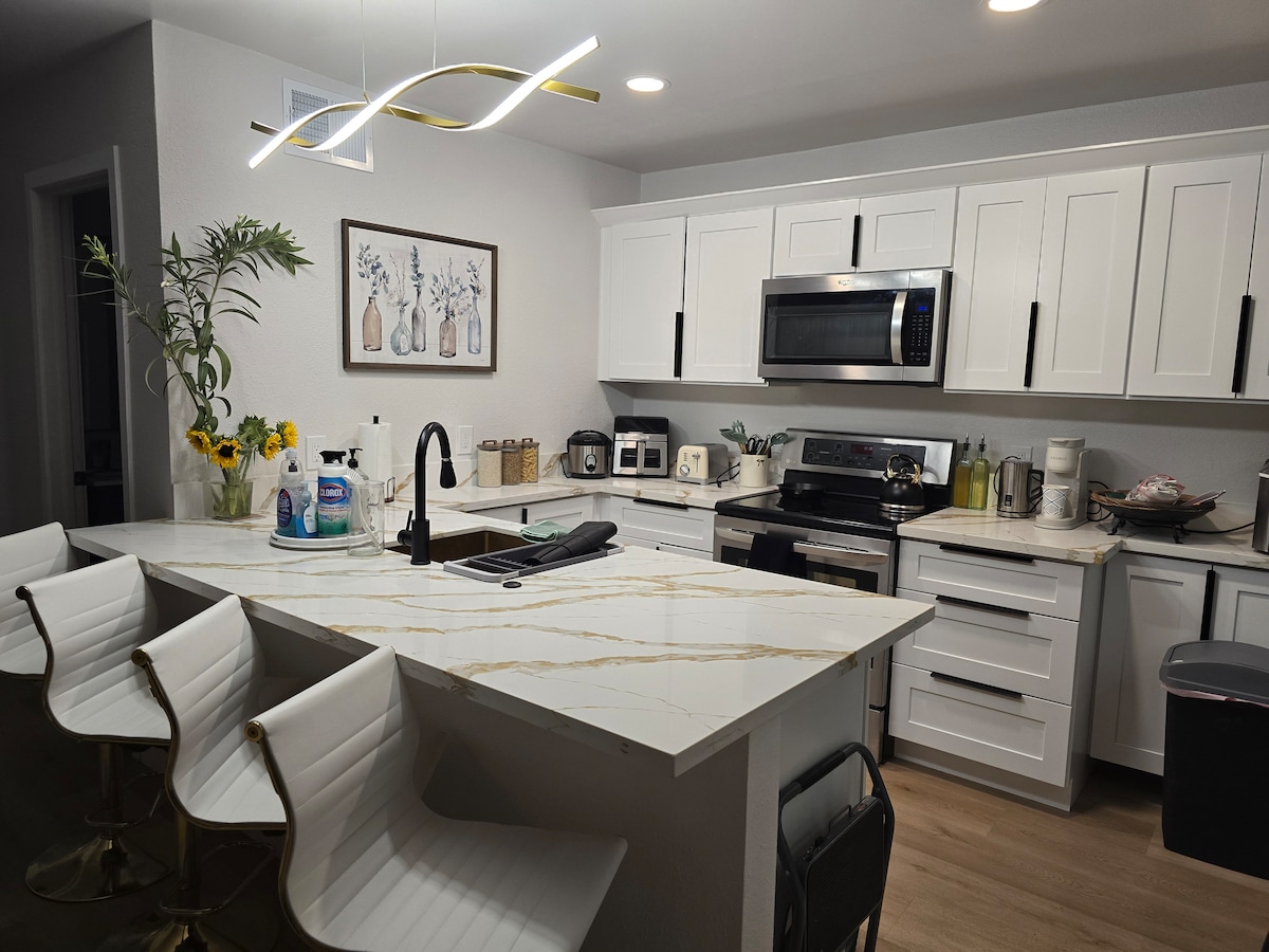 從這間全新改造的全新大型聯排別墅步行即可抵達噴泉公園和噴泉山市中心。 這間 3 間臥室 2.5 間浴室的房源配有全新電器、閃亮的廚房和後院,最多可供 8 人入住。 您可以使用整套連棟房屋和2個停車位(其中一個有遮蔭),位於噴泉山中心安靜的街道上。距離斯科茨代爾和鳳凰城只有20分鐘路程。 從這個沙漠瑰寶中每晚凝視星空!