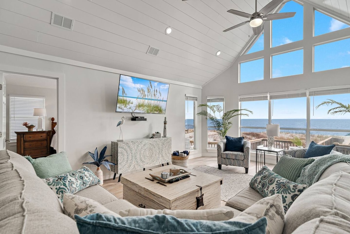 ✔ Directly Across From Beach ✔ All Dogs Welcome, Dog-Friendly Beach ✔ 4 Bedrooms, 2 Bathrooms – Sleeps Up to 10 ✔ Unobstructed Ocean Views from Wrap-Around Deck ✔ Full Putt Putt Course & Corn Hole Under the House ✔ Spacious Deck with Adirondack & Lounge Chairs + Outdoor Shower ✔ Beach Wagon, Chairs, Toys & Boogie Boards Provided ✔ 5 Minutes to Local Restaurants, 20 to Downtown Gulf Shores ✔ High Chair, Pack ’n Play, Linens, Towels & Soaps Included