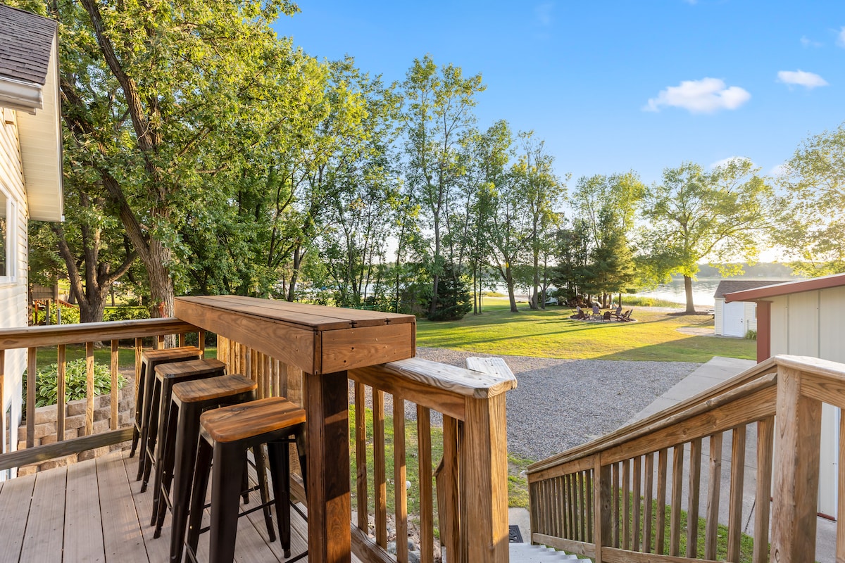 Retreat to Leisure Lodge, 2 hrs from MSP or Fargo: • 4 king beds, 4 Twin XLs, pullout queen, portable crib • 3 baths (one on each level) • Fully stocked kitchen w/ indoor & outdoor dining for 10+ • Spacious year-round home with indoor garage parking, not a seasonal cabin • Hot tub + fire pit w/ wood provided • Paddleboat, kayaks, lake toys & nearby trails • Cozy gas fireplace & crisp lake views • 130+ five ⭐️ reviews, family-owned/operated •Seasonal dock late spring into the fall