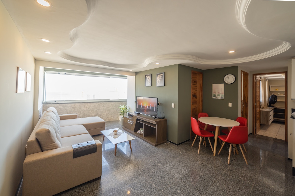 現代化裝潢的公寓,可欣賞海景。 位於Fortaleza最好的區域,靠近酒吧、餐廳和所有當地基本設施,距離海灘只有500公尺。 每日價格包含能源費用( 1個月以下的預訂)。 兩間臥室和兩間浴室。 臥室配有空調。 現代化的客廳,配有智慧電視,包括Netflix。 高速穩定的網路。 廚房設備齊全,包括洗衣機。