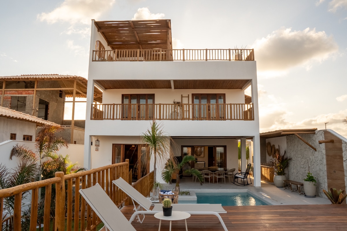 家庭住宅位於天堂般的帕拉朱魯海灘,這是世界各地風箏衝浪者的熱門地點。非常適合那些尋求休息而不放棄樂趣的人。距離海灘1公里,有綠地、遊樂場、露台和游泳池。新房子,通風良好,四周有門廊(吊床),讓您享受應得的休息。位於卡諾阿克布拉達(Canoa Quebrada)和馬約蘭迪亞(Majorlandia)(阿拉卡蒂)海灘以及丰特斯海灘(Praia das Fontes)和莫羅布蘭科(Morro Branco)(貝貝里貝)之間,可以在沙丘和海灘上進行多種遊覽。