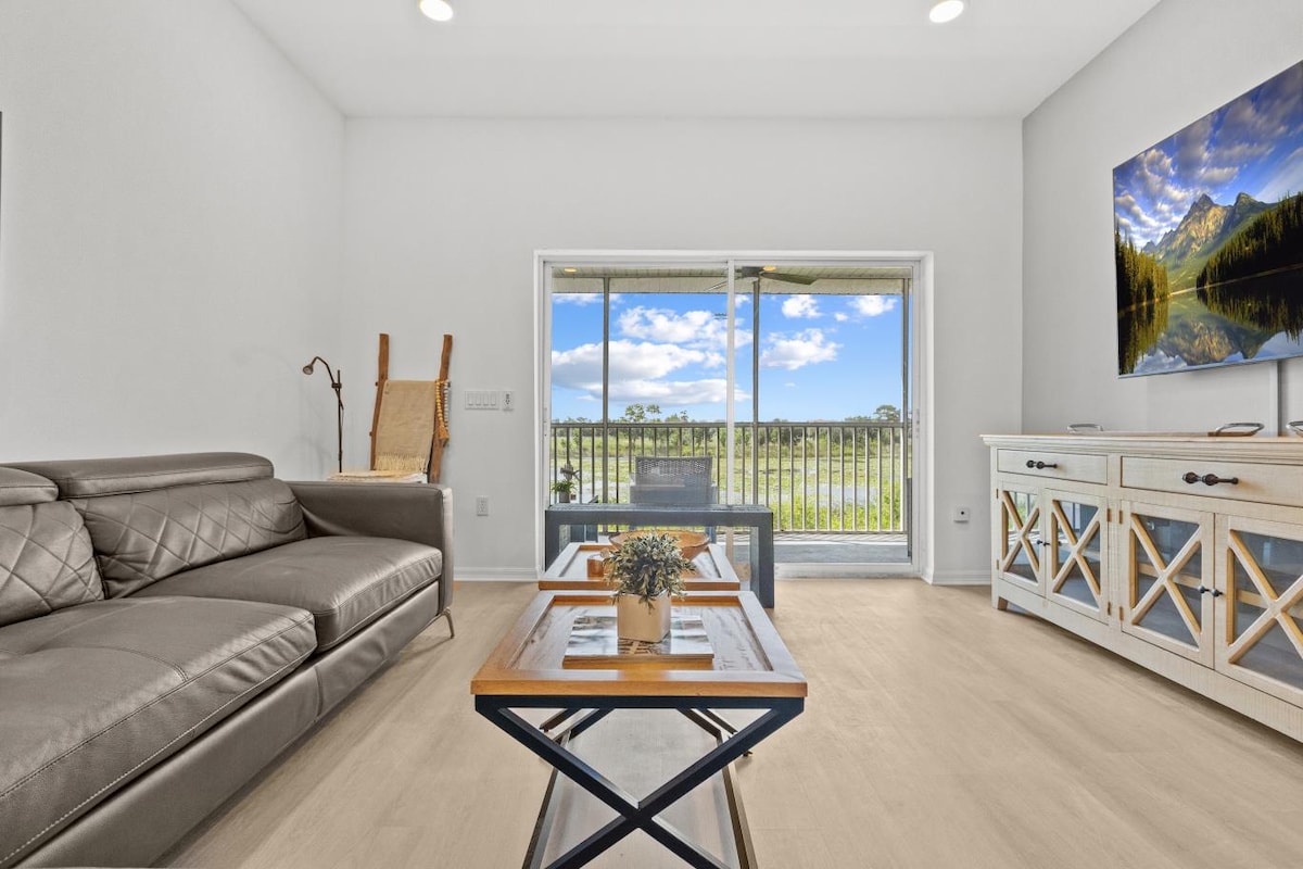 Escape to our charming 3-bed, 2-bath condo near Disney! Nestled in a serene location, our retreat boasts a backyard that opens up to a captivating nature preserve. Step inside to discover stylish bedrooms, modern bathrooms, a fully equipped kitchen, and a cozy living area. With its proximity to the attractions of H2O park and Disney, you'll have endless entertainment options at your fingertips. After a day of adventure, unwind on the private patio, surrounded by the tranquility of nature.