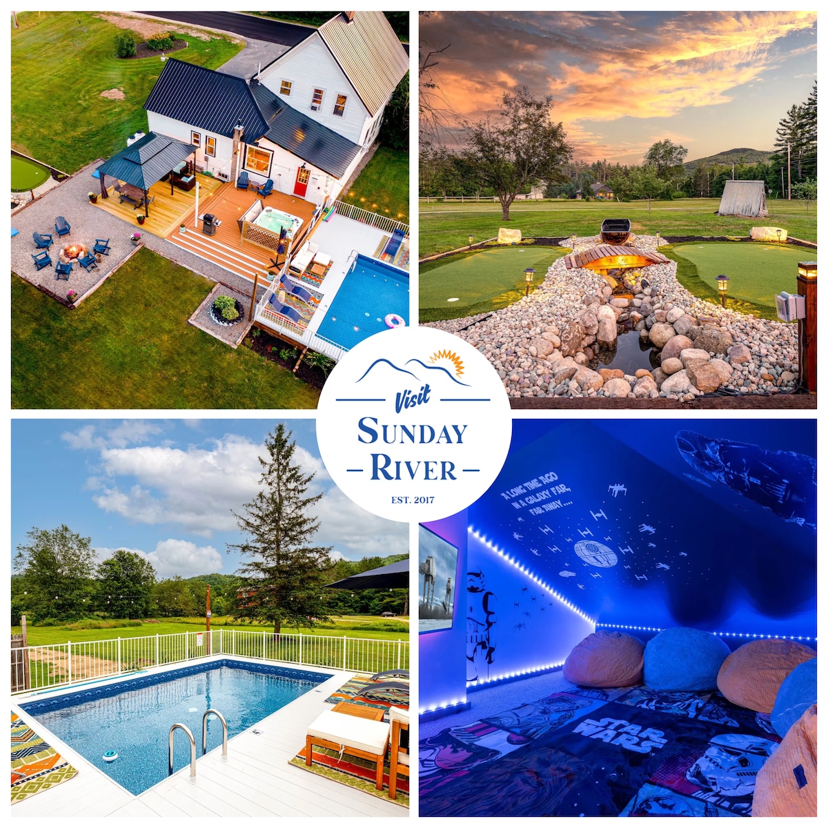 River Valley Sunset Home is a spacious vacation rental on 8.75 serene acres in Rumford, Maine, near Bethel/Newry. With beautiful mountain views and breathtaking sunsets, it offers ample space for families to explore the Mountains/Lakes Regions. A skier's paradise, it's close to top ski resorts like Sunday River, Black Mt, Mt. Abram, and Titcomb Mt. The property is also adjacent to the Androscoggin River, perfect for fishing enthusiasts.