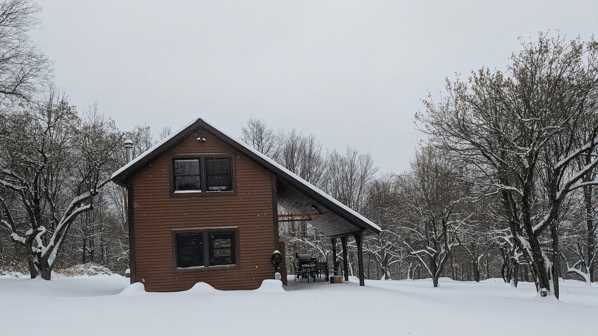 歡迎來到冬日度假勝地! 在佛蒙特州綠山的32英畝土地上放鬆身心,距離傑峰滑雪度假村約20分鐘。 享受在房源內蜿蜒的伐木小徑上漫步,並在俯瞰傑伊峰景觀的火坑周圍的阿迪朗達克椅子上放鬆身心。 對於電動車車主,現場提供 2 級充電器,並免費提供! 客艙可容納四人,配有拉出式沙發床、全套廚房、WiFi、洗衣機/乾衣機、電視、全套浴室和遠程工作的辦公桌空間。