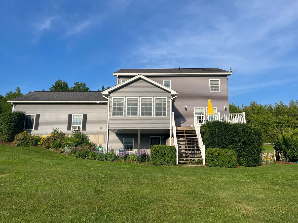 Welcome to the Nest- a private one-bedroom loft apartment above a converted garage, set in scenic rural Vermont. The space includes a full kitchen and elevated views of the surrounding countryside. Guests enjoy shared access to a sauna, exercise equipment , firepit, and gas BBQ, along with hiking and cross-country ski trails on the property. A peaceful retreat just 35 minutes from Smugglers’ Notch, 25 minutes to Lake Champlain, 40 minutes to Burlington, and 1.5 hours from downtown Montréal.