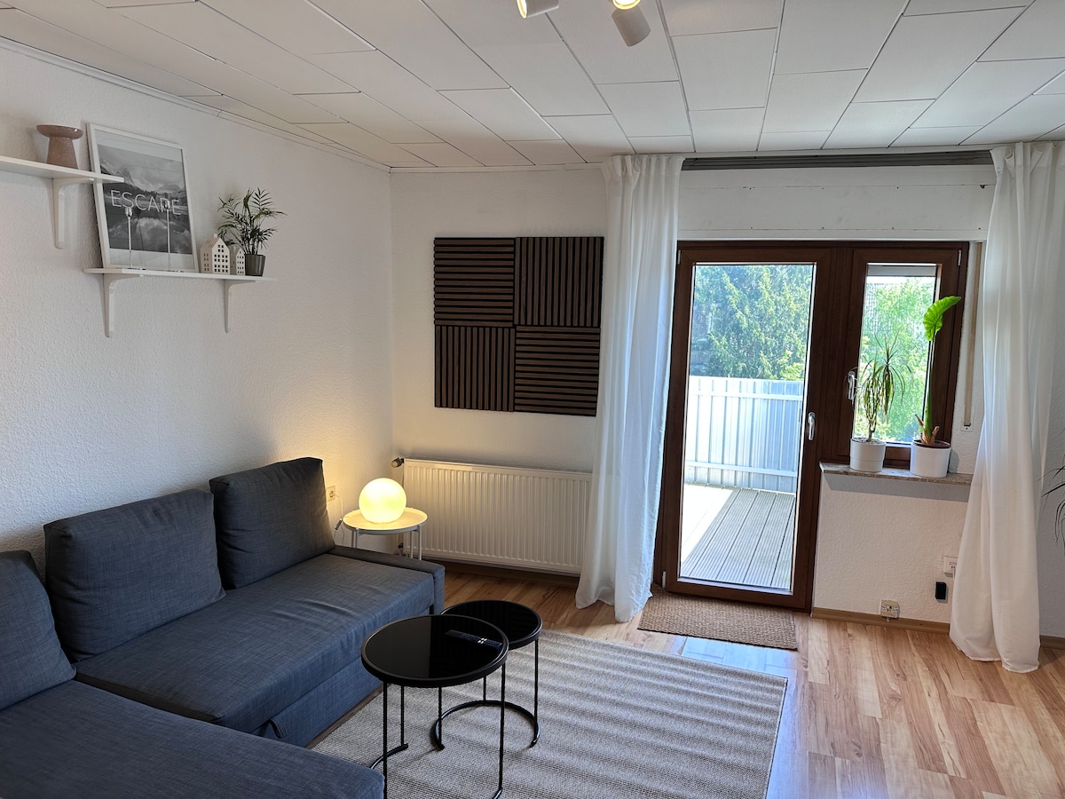 在這間舒適的 70 平方公尺公寓中,您可以完全放鬆。該住宿以北歐風格裝潢,位於一棟雙戶住宅的一樓。前往科隆 (Köln) 交通便利(從 Königsdorf 火車站乘坐公共交通工具 16 分鐘,2.5 公里)。享受附近的森林,放鬆身心。 如有需要,可提供嬰兒床(30 歐元)。 請提前登記。