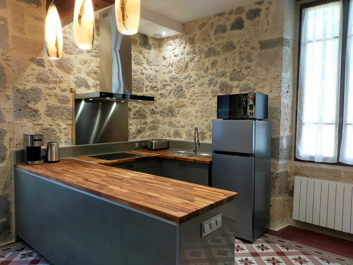 這套公寓位於一棟歷史悠久的房屋中,步行即可抵達內拉克市中心,並於 2018 年進行了全面翻新。 這間位於一樓的住所光線充足,由一間客廳、一間設備齊全的廚房、兩間臥室、一間浴室和一間獨立廁所組成。它有一個獨立的入口。 在您入住期間,您可以享受公園及其百年古樹,以及各種陰涼的露臺。 歡迎來到內拉克!