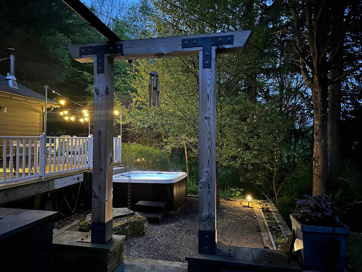 在森林裡的童話故事享受大自然。 這個田園詩般的度假勝地結合了異想天開的結構、精心策劃的聚會空間和私人樹木山坡,四周環繞著徒步道和古樸城鎮。 免責聲明:這是一間鄉村小木屋。 暖氣來自燃木爐,沒有空調。 浴室是與小木屋分開的結構,位於山坡上,有石階梯。 烹飪包括木炭烤架、小型戶外小廚房或火。