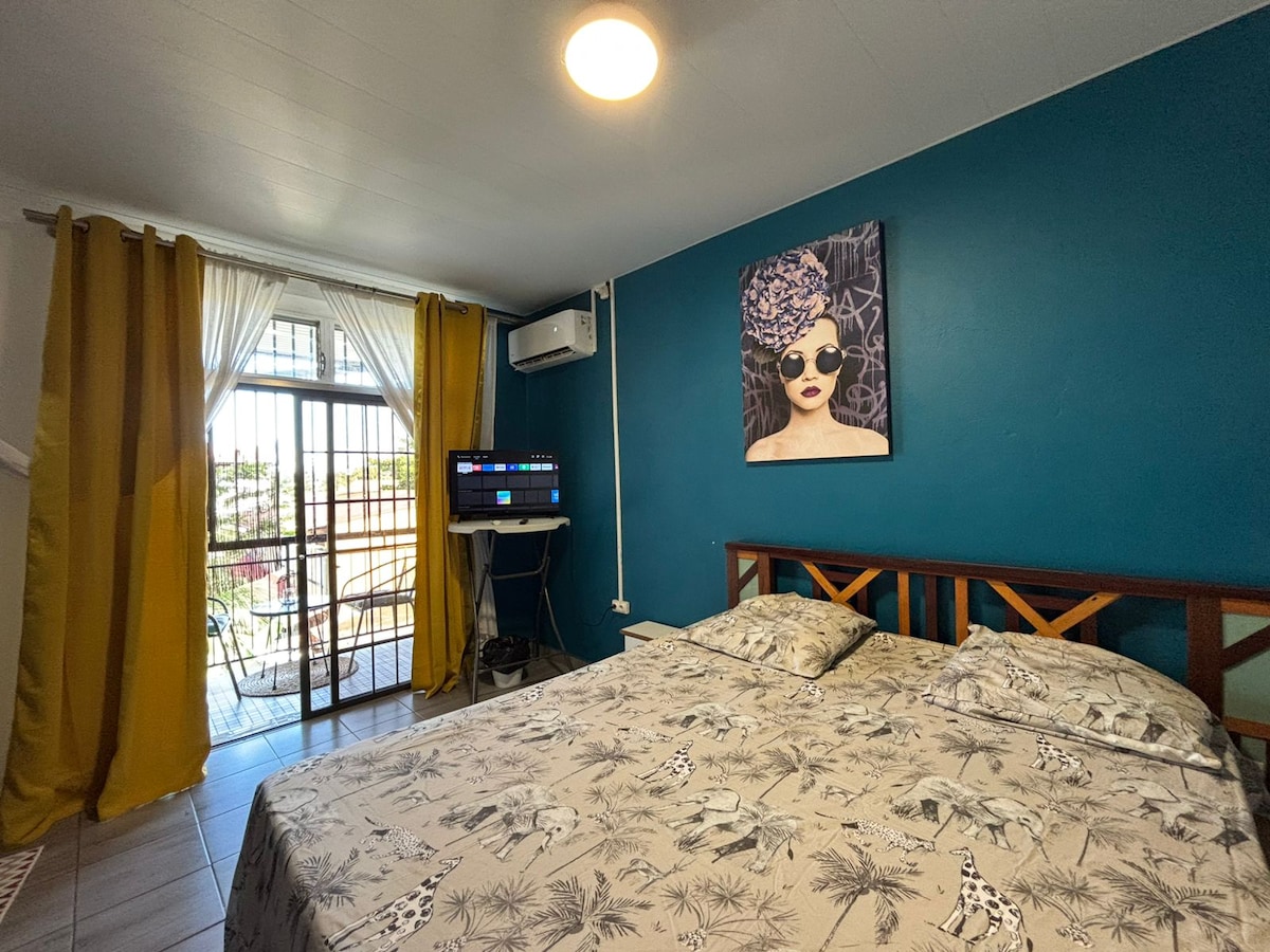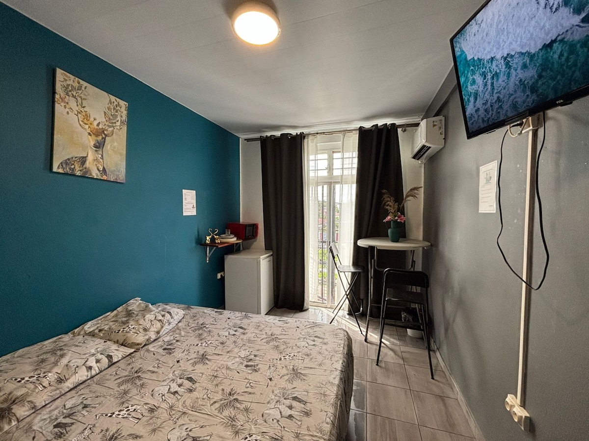 Charmant chambre climatisé proche de la Place des Palmistes Nous vous proposons une chambre confortable et climatisé, situé au premier étage d'une maison, dans une ruelle calme où l'on profite du chant des oiseaux. Le logement comprend : • Une chambre climatisée avec un lit double (140 cm) et une télévision • Une salle de bain avec WC • Un espace repas convivial Sa localisation idéale, à deux pas de la Place des Palmistes, vous permettra de profiter pleinement de votre séjour