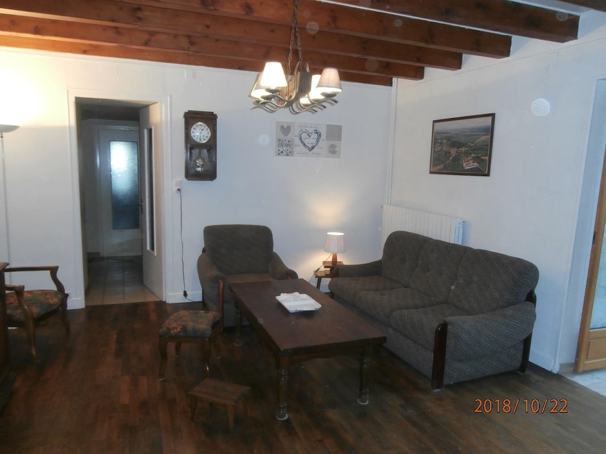Dans charmant petit village haut marnais à la limite des Vosges et de la Haute Saône, à 4 kms de la station thermale de Bourbonne les Bains Idéal pour cure, randonnées Au rez de chaussée , une cuisine , un salon , une véranda ,une buanderie, un wc A l'étage, 2 chambres (1 parentale avec salle de bain , 1 lit double) (la deuxieme 1 lit double et 1 lit simple), 1 wc indépendant Espace extérieur avec salon de jardin. Possibilité de garer un véhicule dans la cour Nécessaire de bébé disponible