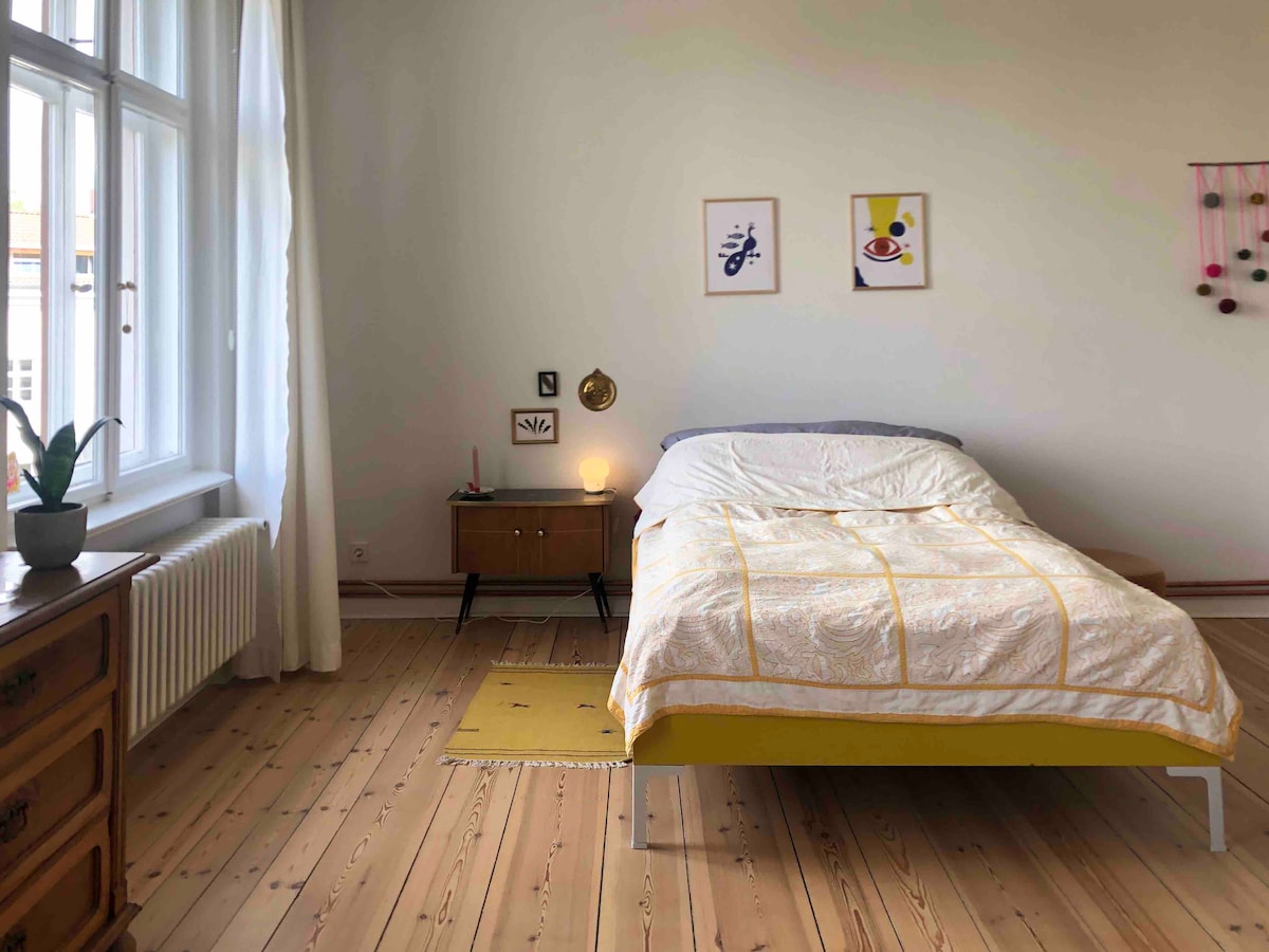 美麗的Loft空間,位於柏林充滿活力的Kreuzberg區域的安靜後院。 房源內有一間客廳、一間臥室和一間衛浴。 總共有一張大雙人床和一張睡床,最多可供四人入住。 閣樓空間屬於柏林最有趣的區域之一,有很多酒吧、餐廳和綠色區域。 公寓位於三樓,沒有電梯!