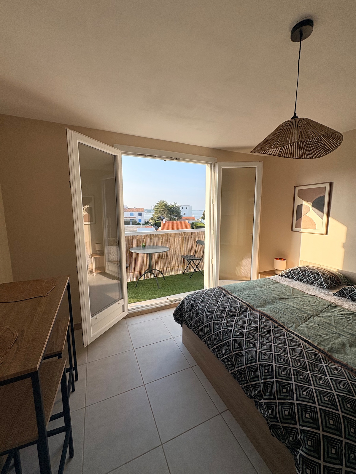 ENVIE ÉVASION FRONT DE MER🌊 Vous avez trouvé💪drap fourni Appartement 2 pièces 45m2 WIFI 5G📶moustiquaire ACCÈS IMMÉDIAT PIÉTONNIER MER🏖️ FORET🌲PONT NOIRMOUTIER Embarcadère ILE YEU🚢 La loggia vue forêt🌳domaniale vue mer🌊latéral VELODYSSÉ🚴 Rando GR8🥾 ICI DRAPS FOURNIS CHAMBRE 1 grand lit 160x190 king siz 1 lit 80 pliant 1 lit parapluie Bébé👶 SÉJOUR 1 canapé lit 2 personnes couchage 2x80 Accueil personnalisé sur place Stationnement privatif voiture sous sol possibilité mettre vos vélos