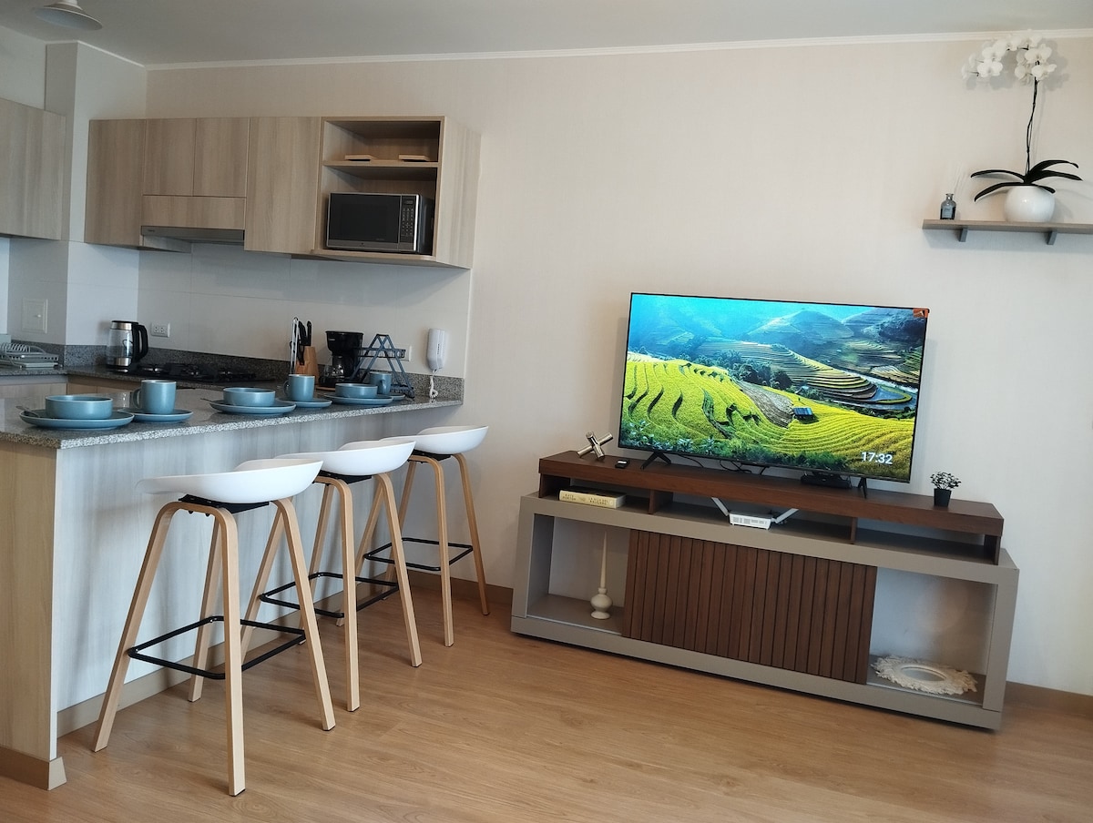 單間公寓,陽台可俯瞰街景。位於Pueblo Libre,距離機場僅25分鐘,距離利馬歷史中心僅18分鐘。配有 1 張雙人床和 1 張單人沙發床、55 吋電視、Wi-Fi、桌子、書桌、全套廚房用具、微波爐、電鍋、熨斗和熨衣板、電熱水壺、冰箱、配有電烤箱的廚房、風扇和熱水器。浴室配有淋浴間、浴巾和擦手巾。大樓設有 24 小時雙重監控系統。