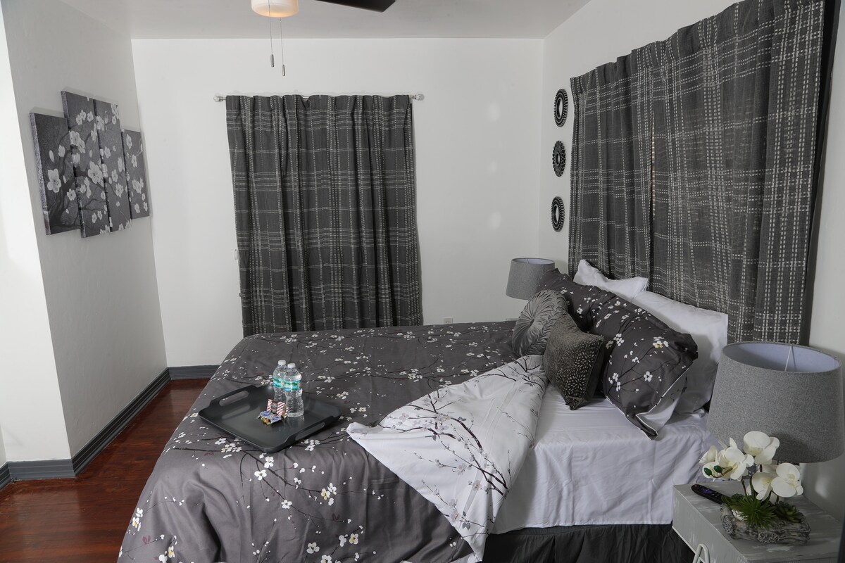 老式私人住宅。 2間臥室/1間浴室。 最多可入住4人。 大牀;雙人牀+房客臥室的沙發,可折疊成單人牀。額外房客需支付50美元/晚。 家具齊全。FP、電視、遊泳池、洗碗機、圍牆後院。 W/D適用於入住3晚以上的房客。 請提前通知寵物。 不允許舉辦派對。預訂年齡至少為25歲。 有興趣住宿超過2週的季節性房客,請詢問價格。 透過可驗證的商務差旅,允許每日費率。