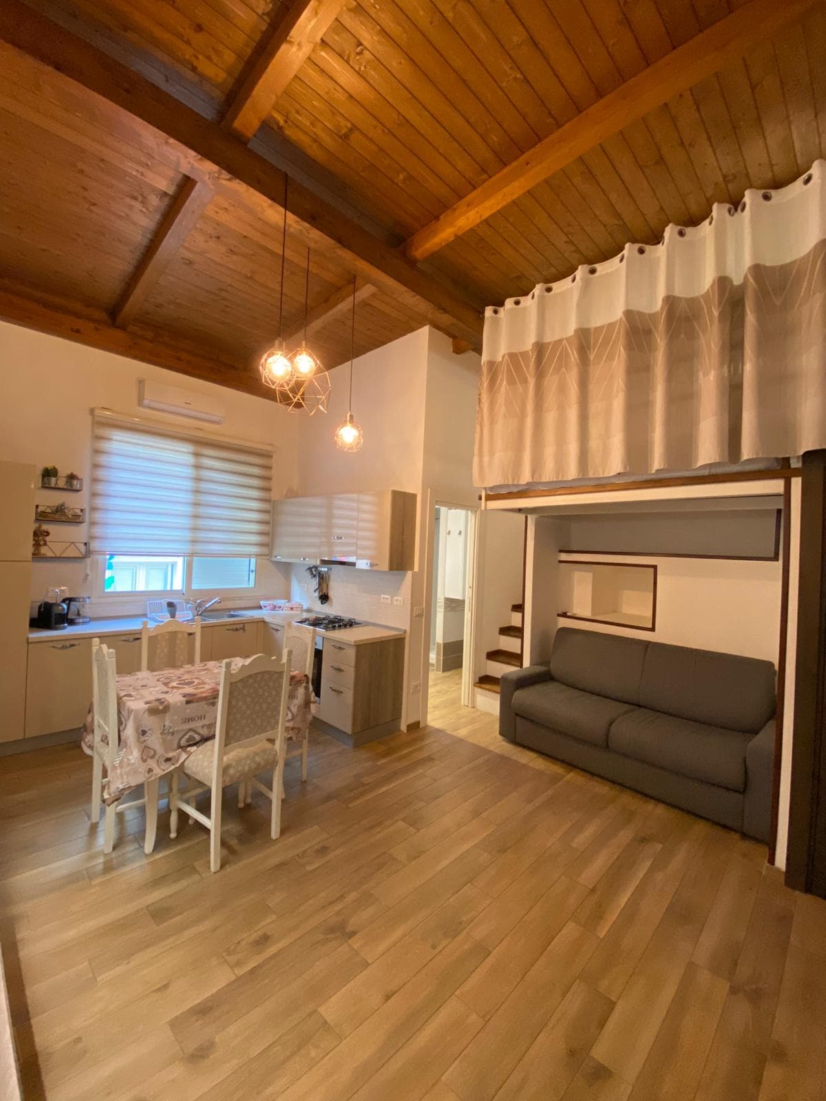 ★★★★★ Discover the pleasure of a rejuvenating weekend or a smart-working stay in this refined apartment in the heart of Terracina, just steps from the sea and the Temple of Jupiter Anxur. Located on the main street, it welcomes you with authentic experiences: excursions, spiritual paths, local tastings, and breathtaking sea sunsets. The house features: -1 living room with dining area, smart TV and sofa bed -1 double bedroom with TV -1 twin room -1 kitchen -1 balcony -1 full bathroom