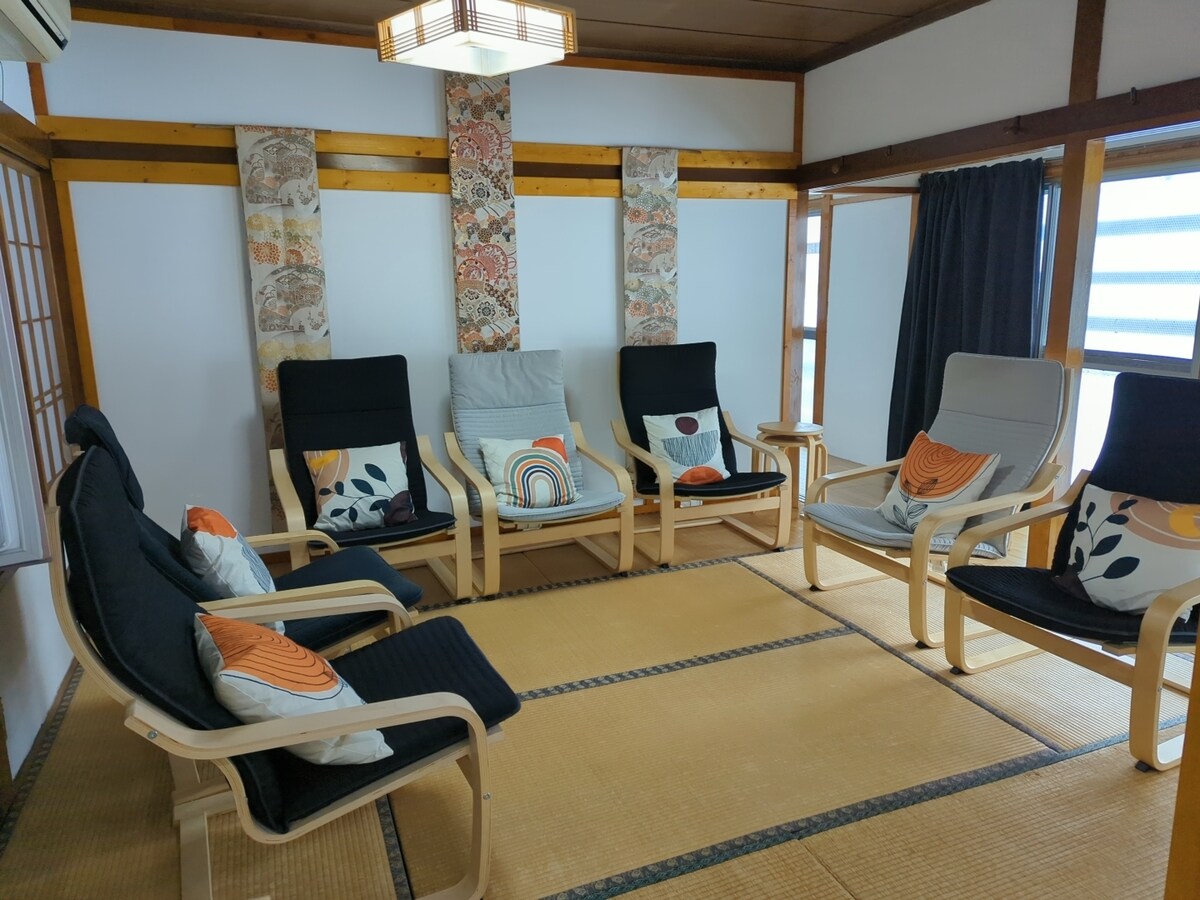 從十日町站步行1分鐘。這是一棟兩層樓的小房子。 因為在市區,附近有很多美味的商店。 有日式客房、西式客房和餐廳,適合情侶、家庭和團體入住。 當然,您可以在廚房自行烹飪。 整棟出租,讓您安心。 房子內只有淋浴,但附近有溫泉。(步行7分鐘) 非常適合目前熱門的工作度假。 與鄰近的梅屋合併,可容納 8 人入住。