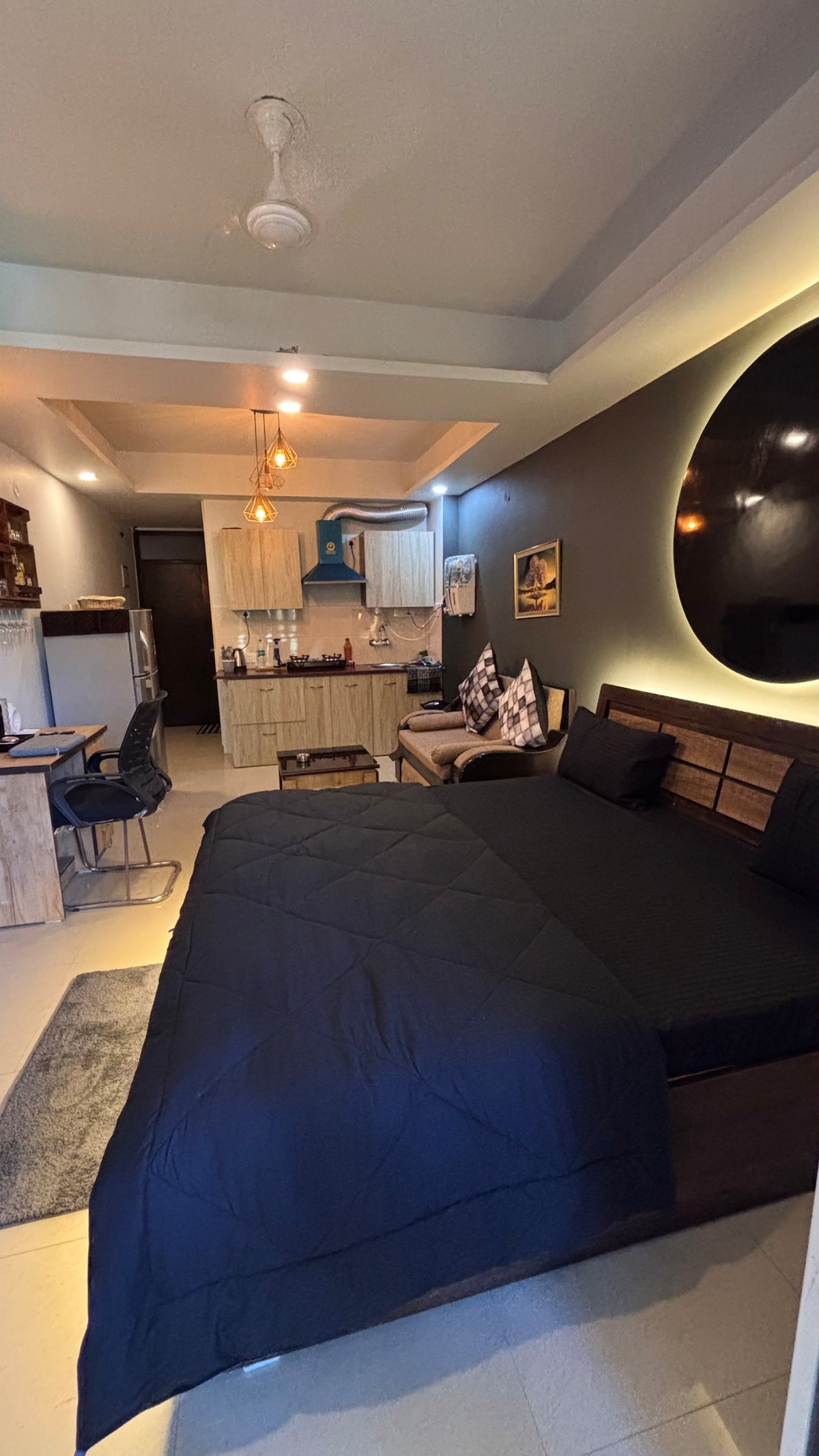 Experience a calm and luxurious stay at Moonlight Retreat. This modern studio blends cozy comfort with elegant design- featuring warm lighting , a moon ispired wall, plush king bedding and a chic mini bar that sets a dreamy , calming vibe from the moment you enter. Perfect for couples or solo travlers seeking a stylish and relaxing escape with a soothing mountain view from balcony. Every detail is designed to make your stay an experience - calm,chic, and truly unforgettable.