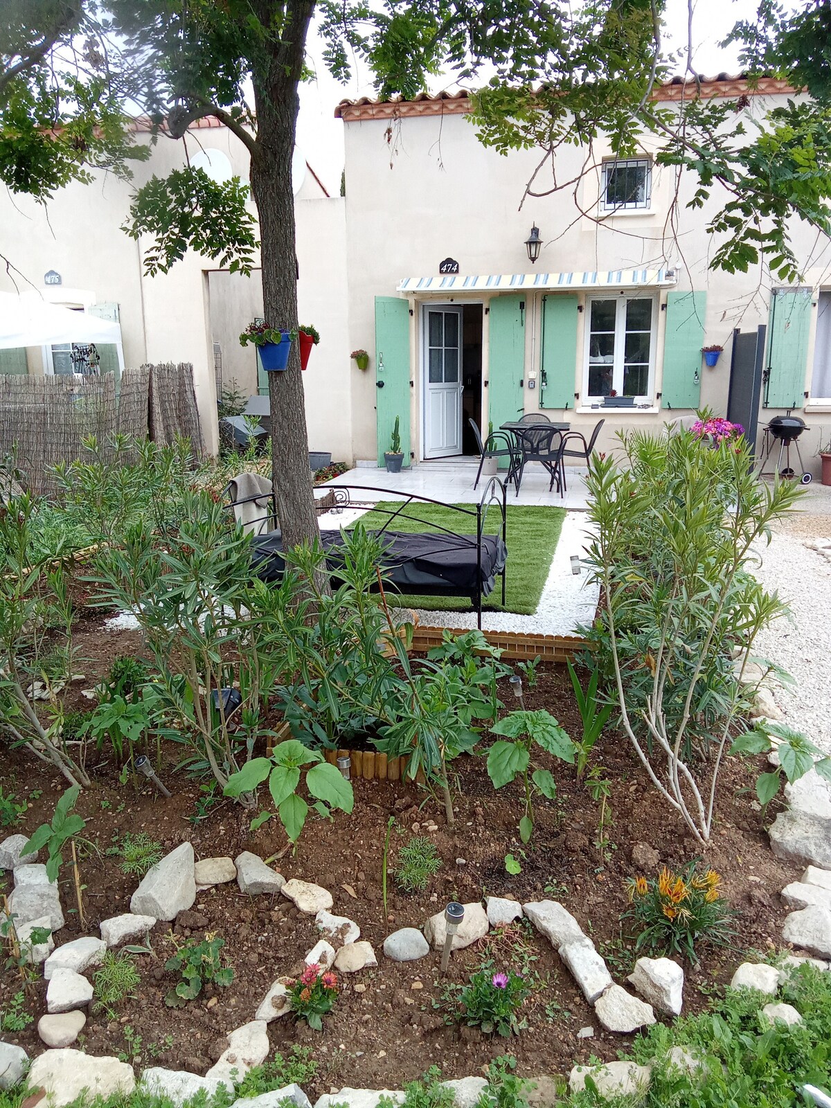 42平方米的獨立屋,配有100平方米的私人花園和2個露台,配有披薩烤箱。 私人溫水泳池( 10平方米)可俯瞰露台,專為您預留(無時間限制) ,地中海花園有棕櫚樹、椰子樹、檸檬樹、香蕉樹和橄欖樹。 房子有全套美式廚房(冰箱、電磁爐、烤箱、洗碗機、Tassimo咖啡機... ) ,配有桌子和4張椅子。