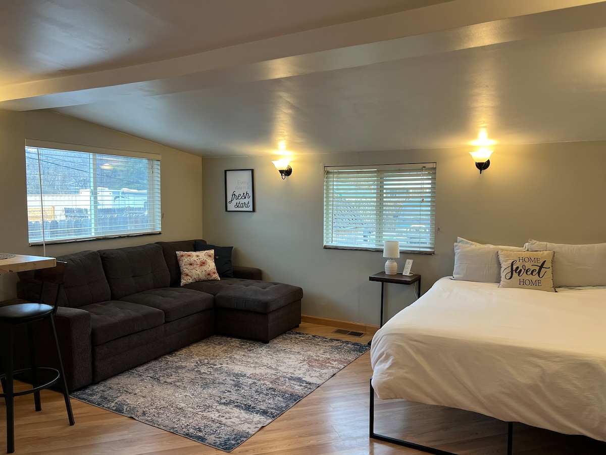 我們充滿陽光的Loft有私人入口、設備齊全的廚房、淋浴/浴缸、封閉的廁所區域、一張大床和一張窄的單人床、空調、電視和串流媒體......和室內鞦韆! 車庫內有一個燒烤和室外餐桌+兩輛自行車、雪鞋和全洗衣機/乾衣機和第二個半浴室。 我們為Loft房客提供車道停車位,距離大學和歷史悠久的市中心僅幾個街區。 &順便說一句,我們也Airbnb主屋: airbnb.com/h/montana-mediterranean