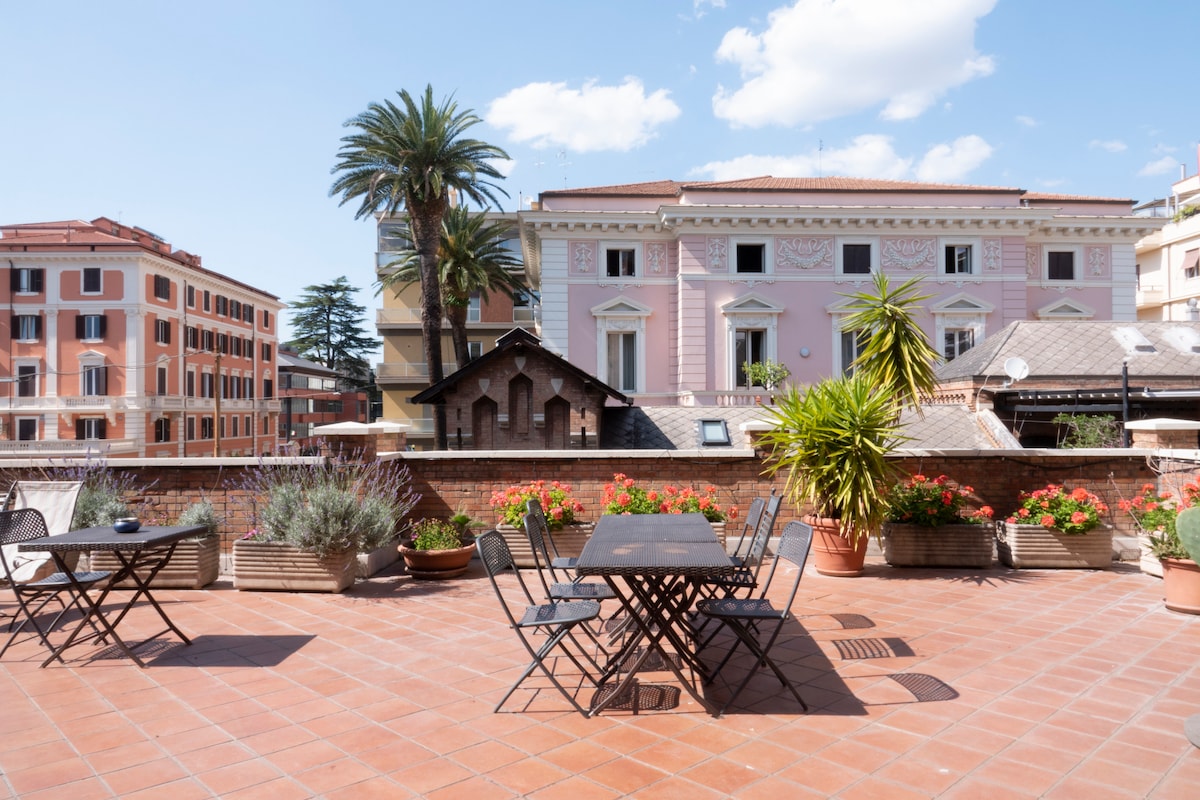 迷人的頂層公寓,距離競技場僅幾步之遙,位於市中心的歷史中心,俯瞰羅馬的屋頂,您可以欣賞到驚人的全景。 特別的位置,適合獨自旅行者、尋找靈感的藝術家、想要遠離家鄉的專業人士、尋找舒適度假勝地的情侶、想在羅馬的心臟地帶度假的人! 交通方便,距離Cavour 40公尺,經過Termini站一站。試試看吧!