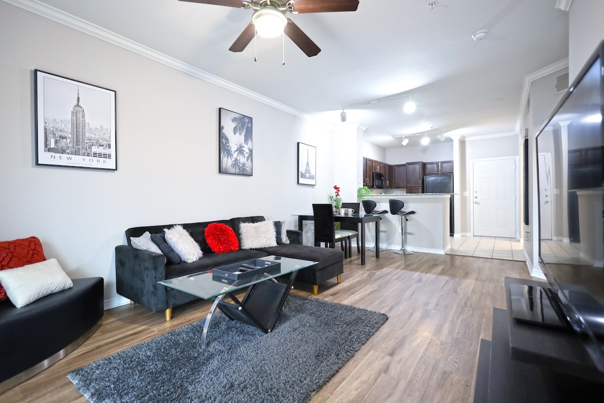 Relax in this stylish 1BR apt near Galleria mall. City is full of award-winning restaurants, bars, shopping malls, historic landmarks, and attractions. Adventure through the Dallas region easily from this prime location. Once you are ready to relax, retreat to this comfy apartment. ✔ Fully Equipped Kitchen ✔ Comfortable 1 Bedroom w/ Queen Bed ✔ Two 4k UHD Smart TVs ✔ Office Workspace ✔ High-Speed Wi-Fi ✔ Free Parking inside Parking Garage Learn more below!