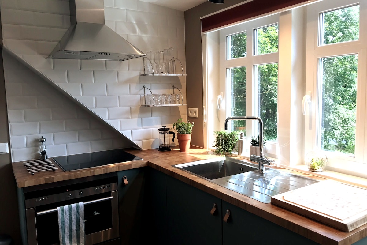 入住瓦爾貝里市中心。 別墅二樓明亮的公寓,配有陽臺和花園景觀。 私人入口,無電梯,路邊免費泊車(不允許在我的院子內泊車)。 包括牀單和毛巾,但您需要清潔並讓公寓保持乾淨和良好的狀態,提供清潔設備。 (不適合殘障人士或小孩,因為要爬樓梯才能到達公寓。) 我的基礎價格是兩人,額外房客每人每晚支付250瑞典克朗。