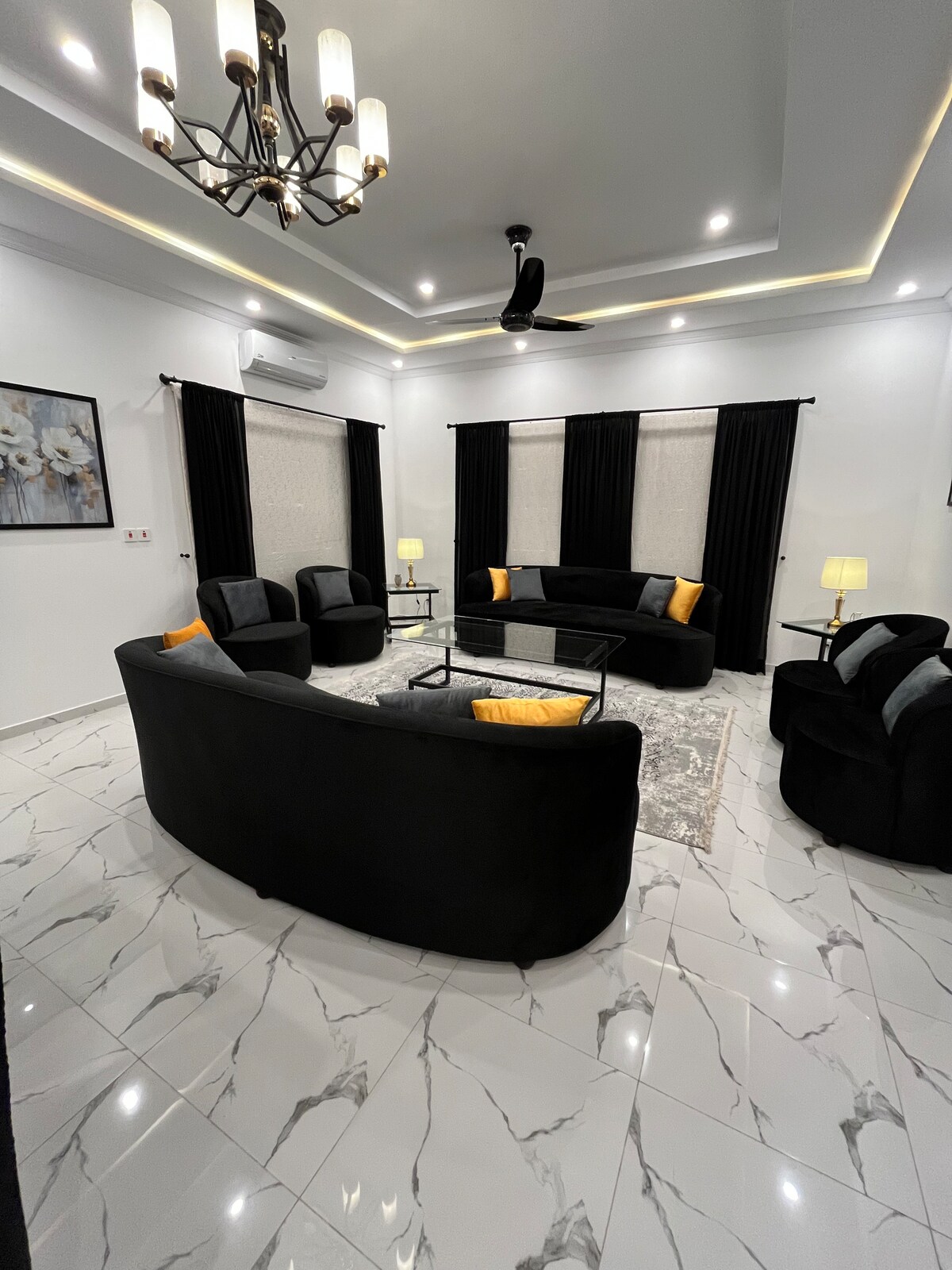 歡迎來到時尚舒適的度假勝地,距離伊斯蘭馬巴德國際機場12分鐘車程! 這間優雅的單臥室公寓專為商務旅客和奢華房客設計,融合了舒適、便利和精緻。 公寓摘要 優雅的起居空間–現代家具、時尚的用餐區域和舒適的休息室,供您在漫長的一天後放鬆身心。 高速Wi-Fi和智慧電視–使用高速網路和智慧電視保持連線和娛樂。